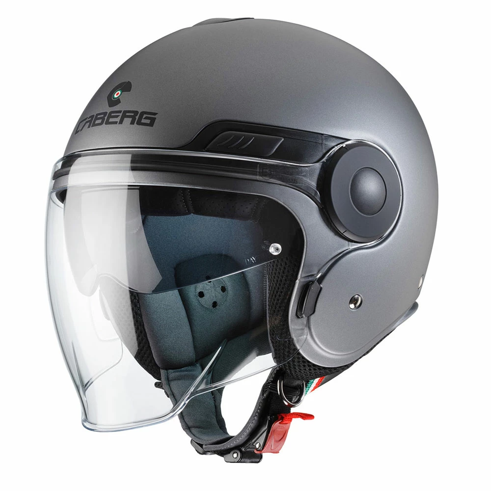 L’esclusivo sistema Double Visor Tech di Caberg permette di guidare sempre con la luce ideale e quindi in piena sicurezza, grazie ad una visiera parasole interna facilmente manovrabile. La visiera esterna trasparente, trattata antigraffi o e predisposta per la lente antifog Pinlock garantisce un’ottima protezione dall’aria anche negli spostamenti extra cittadini grazie alle abbondanti dimensioni. Per evitare lo strisciamento della visiera sulla calotta e per meglio bloccare la visiera stessa, lateralmente sulla calotta sono presenti due fermi visiera.